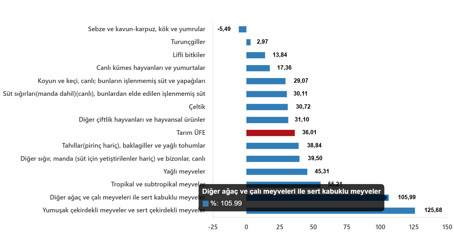 Tarım eserleri üretici fiyat endeksi (Tarım-ÜFE) yıllık %36,01 arttı, aylık %3,06 arttı