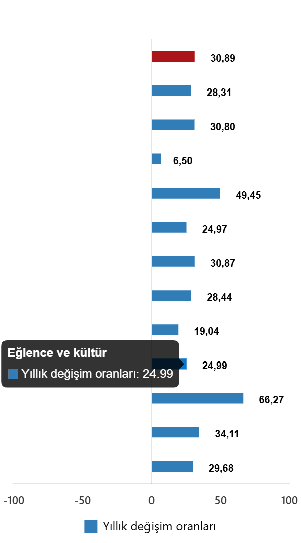 | Bir evvelki yılın birebir ayına nazaran değişim oranı | 30,89 | 44,38 | 64,77 |