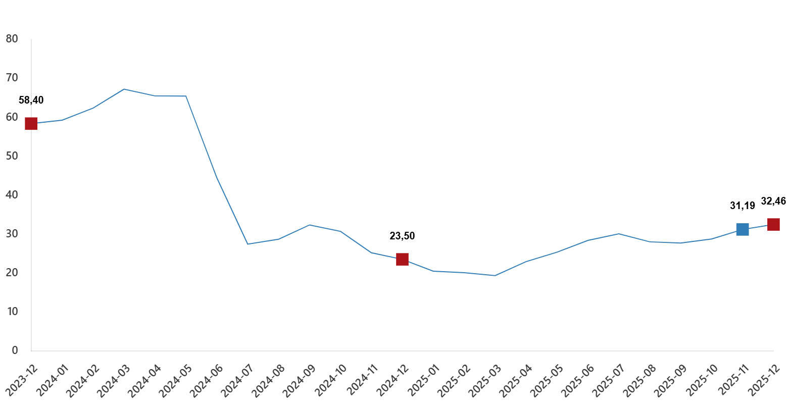 | Bir evvelki yılın Aralık ayına nazaran değişim oranı | 32,46 | 23,50 | 58,40 |