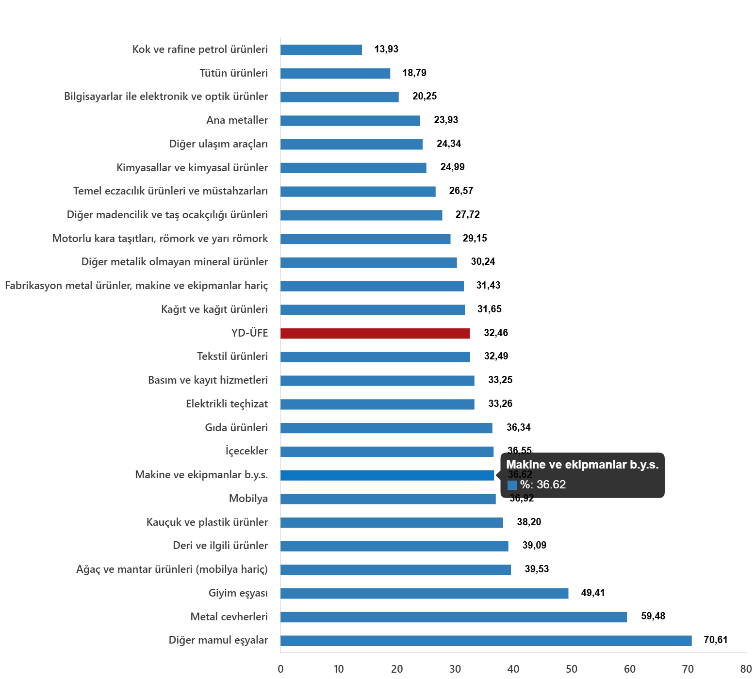 YD-ÜFE imalat eserlerinde yıllık %32,24 arttı